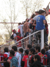 Das letzte Heimspiel zwei Wochen zuvor gegen Sportivo Belgrano hatte Douglas ohne Gästefans austragen müssen, die Sicherheitsbehörden hatten Bedenken angemeldet, da man mit einer ziemlichen Meute aus San Francisco gerechnet hatte. Danach, beim letztem Auswärtsspiel, zog es das gastgebene Villa Ramallo vor, nach Rosario ins Stadion von Newell's auszuweichen, wo 10.000 Douglas-Fans für ein Heimspiel sorgten. Gegen Curcero del Norte, das aus dem fernen Misiones kommt, durften Gäste dabei sein. Normalerweise würden an einem Montag auch nur wenige Fans die weite Anreise antreten bzw. sich diese überhaupt leisten können. Allerdings ist Crucero ein Werksverein, und zwar der eines Busunternehmens, dessen Namen er auch trägt. Was liegt daher näher, als billig ein paar Busse zu stellen und ein paar Fans hinunterzukarren. Böse Zungen behaupten, der Vorstand habe sich bei einem anderen Auswärtsspiel gar nicht erst diese Mühe gemacht und stattdessen ein paar Leute aus der Umgebung dazu "motiviert", Stimmung zu machen. Wie auch immer, es kam eine beachtliche Gruppe Gästefans, ca. 1200 an der Zahl, die auch durchaus bemüht war, ihr Team anzufeuern.