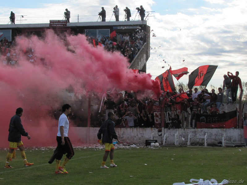 Wie sich die Einleitungen doch ähneln zum Saisonende. Schon wieder sind wir bei einem entscheidenden Spiel um den Aufstieg dabei, diesmal in Pergamino, zu Gast bei Douglas Haig. Die Spielplangestalter hatten es gut gemeint, und so trafen am letzten Spieltag der 2. Phase des Torneo A (den Turniermodus gibt es zu Beginn der kommenden Saison auf golazo.de) Tabellenführer und Zweiter aufeinander. Die Ausgangslage war dabei recht einfach, wer gewinnt, wird Meister und steigt in die 2. Liga auf; nur Gastgeber Douglas würde auch ein Unentschieden reichen. Ein echtes Finale also. Klar, dass ganz Pergamino die Partie sehen wollte, und so drängten trotz Montag, trotz Anstoss zur Arbeitszeit sich etwa 14000 Zuschauer ins für 13.000 zugelassene Stadion.