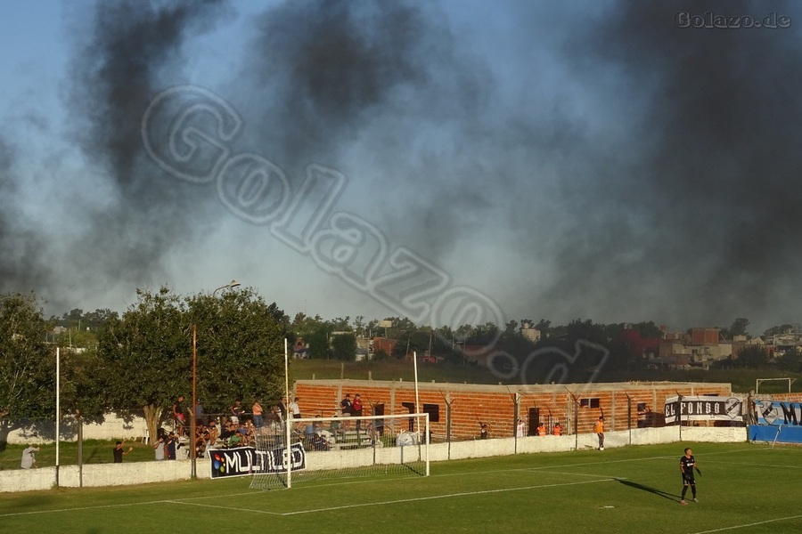 Das Spiel gestaltete sich unterhaltsam, da beide Teams wie üblich in dieser Kategorie bei Ballbesitz sofort den Weg nach vorne suchten. Insgesamt hatten die Gäste dabei leichte Feldvorteile, doch gingen die Gastgeber mit einem schnellen Gegenstoß zum Ende des ersten Durchgangs in Führung. In der zweiten Hälfte war das Spiel deutlich zerfahrener, auch die Stimmung auf den Rängen war etwas eingeschlafen. Vielleicht hatte es ja mit den dicken Rauchschwaden zu tun, die über den Platz zogen, da auf einem Nachbargrundstück irgendwas verbrannt wurde. Als es allmählich danach aussah, dass Claypole den knappen Vorsprung über die Runden bringen könnte, netzten die Gäste zum nicht ganz unverdienten Ausgleich ein.