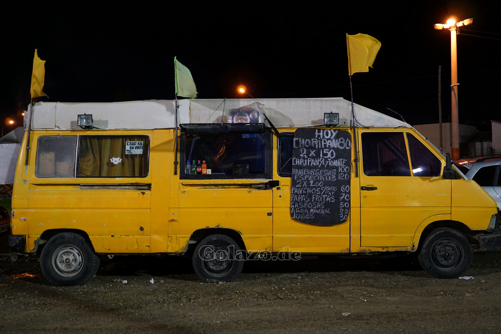 Wenn ein Spiel vorbei war, wechselten einige Fans durch, während die Teams sich warm machten. Aber nicht alle Anwesenden waren unbedingt zwingend an einem bestimmten Team interessiert und wechselten mal von der einen zurück zu der anderen Cancha. Es war sogar möglich zwei Spiele parallel zu verfolgen - und zwar den ganzen Nachmittag über. Alte Herren und 3. Liga im Dauerdoppelpack also. Dafür brauchte man sich nur auf den Weg zwischen beiden Spielplätzen zu stellen. Von dort gab es auch Blicke auf den Mündungstrichter des Rio Gallegos und für gute Augen auch aufs Meer. Für Verpflegung sorgte ein Imbisswagen oder man konsumierte Mitgebrachtes. Falls der Proviant ausging, gab es einen durchgängig offenen Kiosk, etwa 50 Meter entfernt, wo man auch Bier bekam, was ohne Weiteres am Zaun getrunken werden konnte und wurde. Eintritt war keiner zu zahlen. So herrschte natürlich ein regelmäßiges Kommen und Gehen, aber immer war was los.