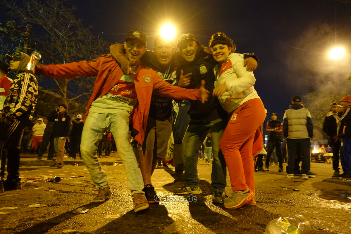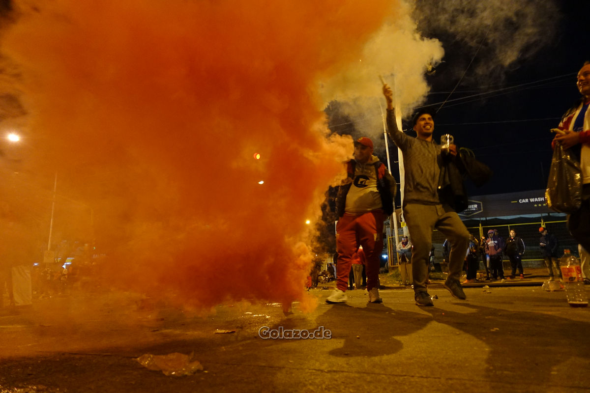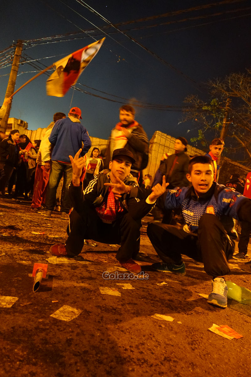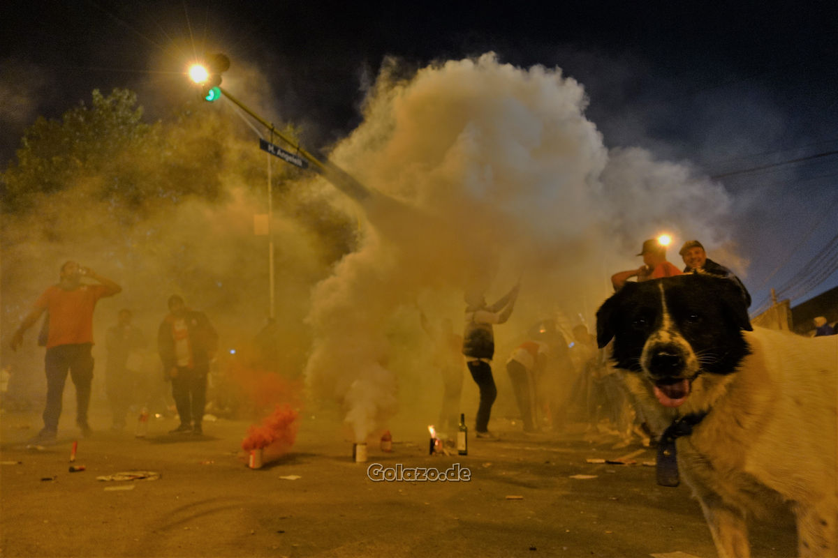 Als dann mit jeder Minute in Halbzeit 2 klar wurde, dass das Ding durch war, stimmte vermehrt auch der Rest des Stadions und sorgte so für etliche Gänsehautmomente. So etwa als die Barra wie bei einem Konzert erst die Massen mitzog, dann die Instrumente aussetzte und nur noch das komplette Stadion zu hören war, wie es sang: "Oh, el gallo va a volver" (der Gockel, kehrt zurück). Vor allem die letzten Minuten, als alle, ob jung, alt, dick, dünn, reich, arm, gebrechlich, muskulös, stumm, blind, blöd oder mit Nobelpreis in der Tasche völlig ausgelassen sangen und sprangen zu: „Dale campeón“, „Dale Morón“ und „Es un Sentimiento“ - irgendwann ein Feuerwerk den ungehörten Schlusspfiff bezeugte und sich alle nur noch in den Armen lagen. Diese Momente werden wohl für alle, die da waren unvergesslich bleiben.