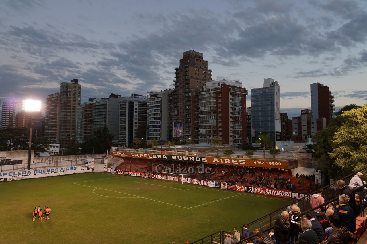 Die übliche Zuschauerzahl im Pasquale bei diesem kleinen Clásico gegen Colegiales, wobei auf der Haupttribüne mehr Leute waren als in der Popu. Diese lebt von ihrer Konstruktion. Durch das Quasi-Dach und dem dahinterliegenden Fitness-Studio kommen Trommel und Gesänge mit einem kräftigen Schall und daher lauter herüber als bei anderen Mobs mit gleicher Zahl.