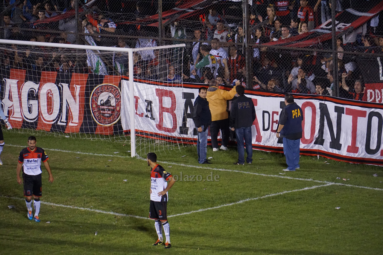 In der 2. Halbzeit wurde ein Spruchband aufgezogen, das an den Abstieg Excursionistas erinnerte, der eigentliche Clásico-Rivale. Es folgten nun fast ausschließlich Gesänge gegen diesen alten Gegner aus demselben Viertel. Die Polizei ließ in Absprache (sprich wortreiche Diskussion) mit den Capos das Banner ohne Repressalien entfernen. Sowohl Cole als auch Defe fehlt Excursio, denn für beide sind die Spiele gegen Excursionistas die eigentlichen Clásicos. Wobei, dieses Spiel mit Gästen...