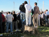 Bei "Juve" ist man von solchen Zielen nocht etwas entfernt. Stück für Stück wird hier an der Zukunft gearbeitet. In dieser Saison war man stolz, wieder im Rahmen des Tornero B in seine kleine Spielstätte zurückkehren zu dürfen. Dafür wurde in den letzten Wochen hart gearbeitet. Die großen Eukalyptusbäume, die bislang das Spielfeld säumten, wurden gefällt und ihr Holz direkt für die neuen Tribünen verwendet. Anders als geplant, dienen die noch vorhandenen Stümpfe ebenfalls als Minitribünen (siehe Fotos). Obwohl es ein Mittwoch war und der Anpfiff bereits um 14:00Uhr also zur Arbeitszeit erfolgte, war die Hütte mit 2.500 Zuschauern rammelvoll und die Stimmung prächtig...vor dem Spiel.