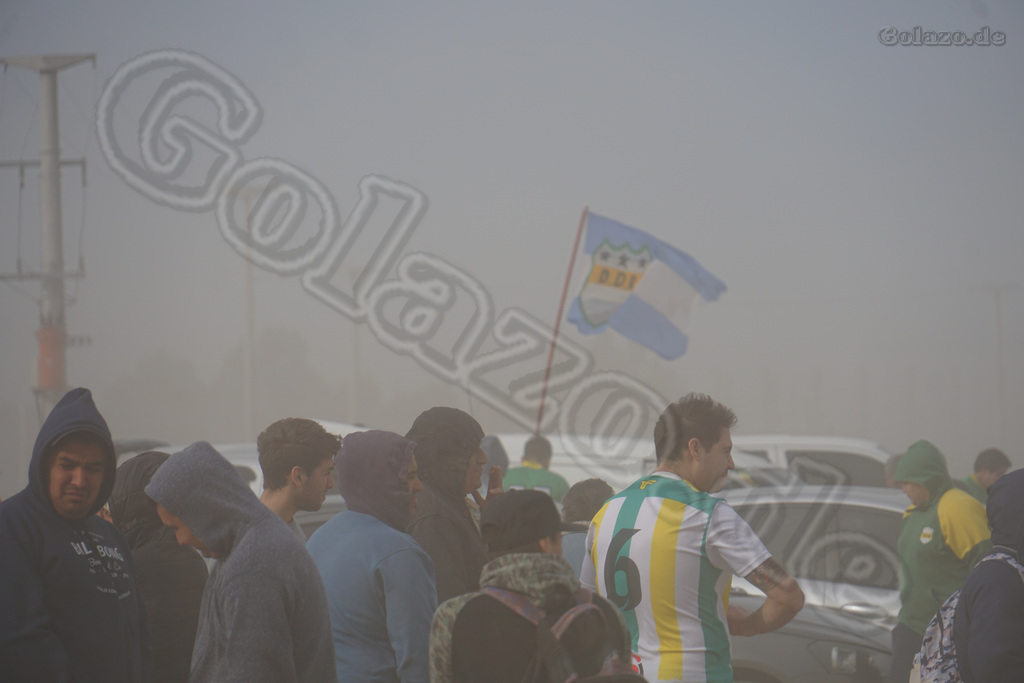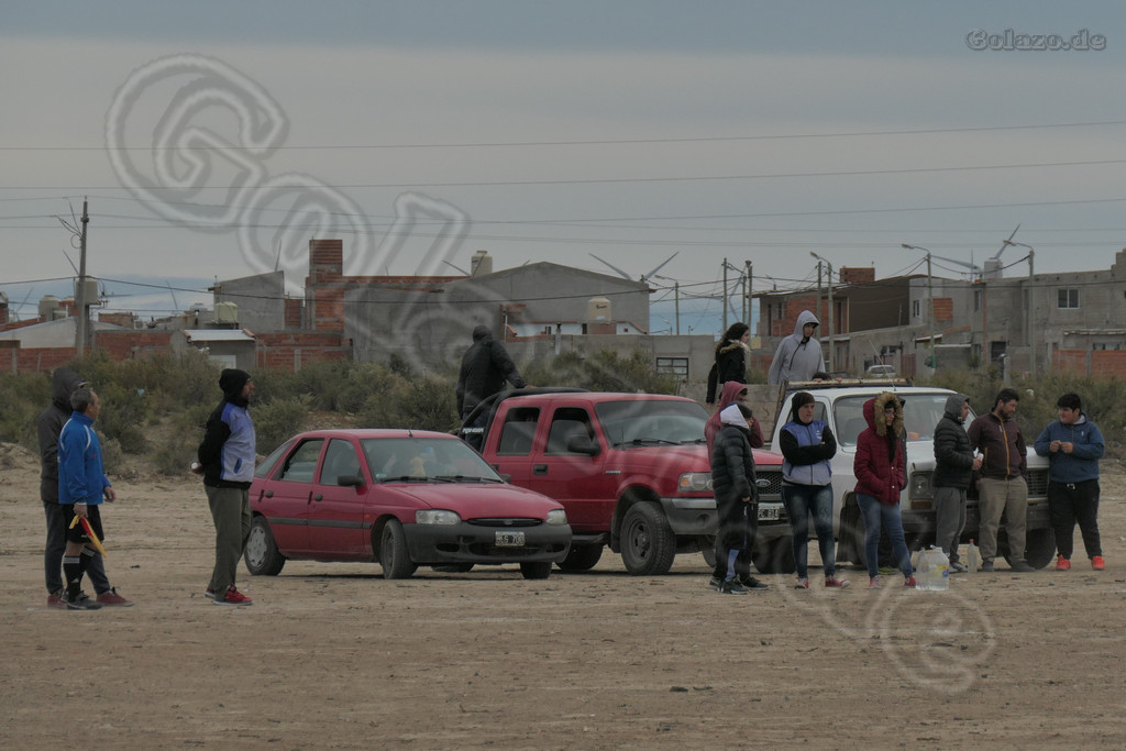 Etwas überraschend angesichts des sonstigen Zuspruchs an gewöhnlichen Spieltagen war aber die relativ geringe Anzahl an Fans der Gastgeber, von denen auch erst viele mit Anpfiff erschienen. Zwar präsentierte sie eine Blockfahne und es waren auch Gesänge zu hören, doch irgendwas fehlte. Schon bald war zu hören, dass es daran läge, dass die lokale unabhängige Fußballliga an diesem Tag einige wichtige Finalrunden austrug. Viele Fans des Vereins, der am Stadtrand von Rawson, auf der anderen Seite des Chubut-Flusses sein kleines schmuckes Stadion hat und dessen meiste Fans sich aus dem am Fluss gelegenen Randbezirk, der so genannten Villa oder eben auch La Ribera, rekrutieren, an diesem Tag eben selbst aktiv wären.