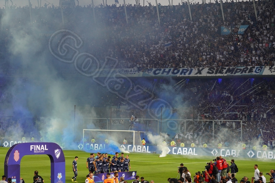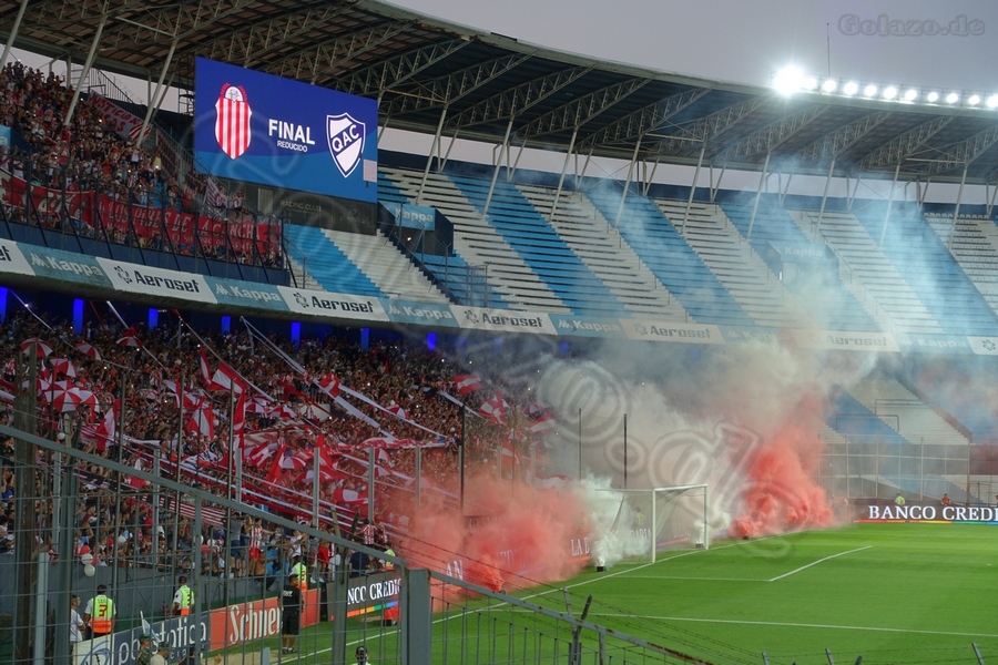 Wie auch immer sich die neuen Fans der Rot-Weißen rekrutiert haben mögen, es wurde somit auf den Rängen das maue Fußballerlebnis auf dem Rasen ausgeglichen. Zu Beginn wurden kontrolliert vor den Kurven Rauchtöpfe in den jeweiligen Farben gezündet, was vom Verband organisiert war, (Quilmes hatte aber etwas eigenes Zeug dabei) und die Gesänge waren beim Aufläufen schön laut und euphorisch. Auch in den übrigen 90 Minuten gab es nichts zu beanstanden, mal war die eine Seite lauter mal die andere, mal war auf beiden die Anspannung zu merken, mal ließen beide gleichzeitig die Sau raus.