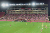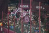 Kurz vor und quasi mit dem Anpfiff strömten dann doch noch die Immertreujen herein, sodass sich ein ähnliches Bild ergab wie zum Gruppenphasenauftakt: die drei fürs Heimpublikum geöffneten Tribünen waren insgesamt zu etwas mehr als einem Drittel gefüllt. Die Barra kam erst etliche Minuten nach Anpfiff herreinmarschiert und sorgte vor allem im zweiten Durchgang völlig dem Spielverlauf entgegengesetzt mit ihrer Liedauswahl für Feierstimmung. Überhaupt kamen die Lieder die 90 Minuten ziemlich entspannt, wohl gelaunt und locker, aber in guter Lautsträkre herrüber. Das war beim Heimauftaktspiel gegen Garcilaso etwas weniger euphorisch gewesen, sich auch da seinerzeit die Anspannung größer war.