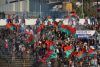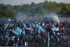 Unter der Woche hatten Boca-Fans beim Superclásico mit Pfefferspray für einen Spielabbruch gesorgt. Das Thema wurde wenige Tage später auch in Montevideo noch heiß diskutiert, bestimmt würden die Jungs bei den Clásicos an diesem Wochenende derartiges nacheifern wollen. Solch und anderes bekam man zu hören. Die riesige Polizeikette um das Stadion ließ auch gleich erahnen, dass hier in der Villa heute mindestens Molotov-Attacken und Säbelschwingen steigen würde. Die Rampla-Fans zogen martialisch in Richtung Stadion, schon von Weitem stieg Rauch auf und es wurde gezündelt hinter der Tribüne; außerhalb des Stadions, wo es ja auch nicht verboten ist.
