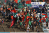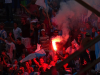 Wie es später hieß, gab es wohl Probleme zwischen Rampla-Fans und Polizei am Eingang, aber davon war im Stadion nichts zu merken. Auf den Rängen blieb alles ruhig. Fast zu ruhig. Das Intro mit vielen Fahnn und etwas Beleuchtung und Rauch war noch ganz stimmungsvoll, anschließend waren es vor allem die Gästefans, die für Betrieb sorgten. Nach etwa 20 Minuten war aber auch bei ihnen das Anfangsadrenalin verpufft und es folgte ein ordentlicher, aber nicht brachialer Support. Von den Cerro-Fans kam auch hin und wieder was, insgesamt alles ganz ordentlich, aber nie für Gänsehaut sorgend.